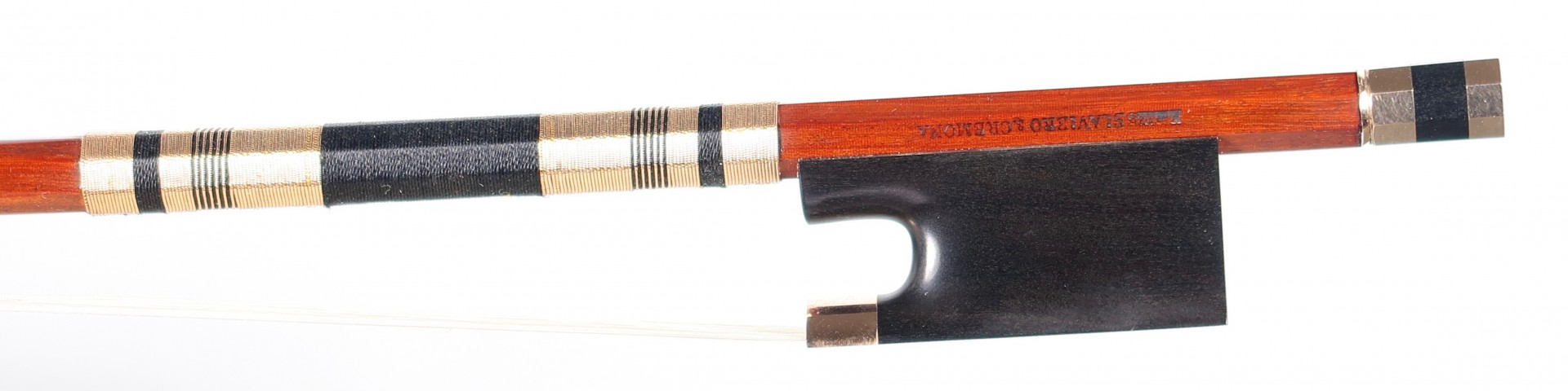 This bow is a 19th Century inspired example, gold mounted and weight 69.3 grams. All Slaviero bows come with makers certificates.